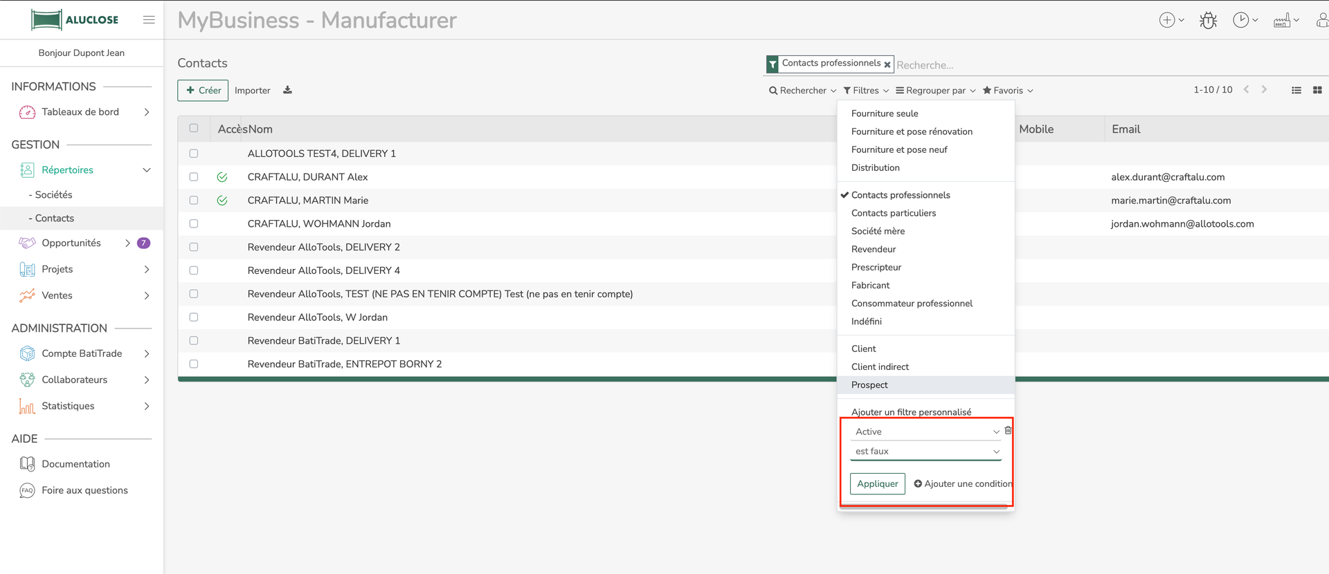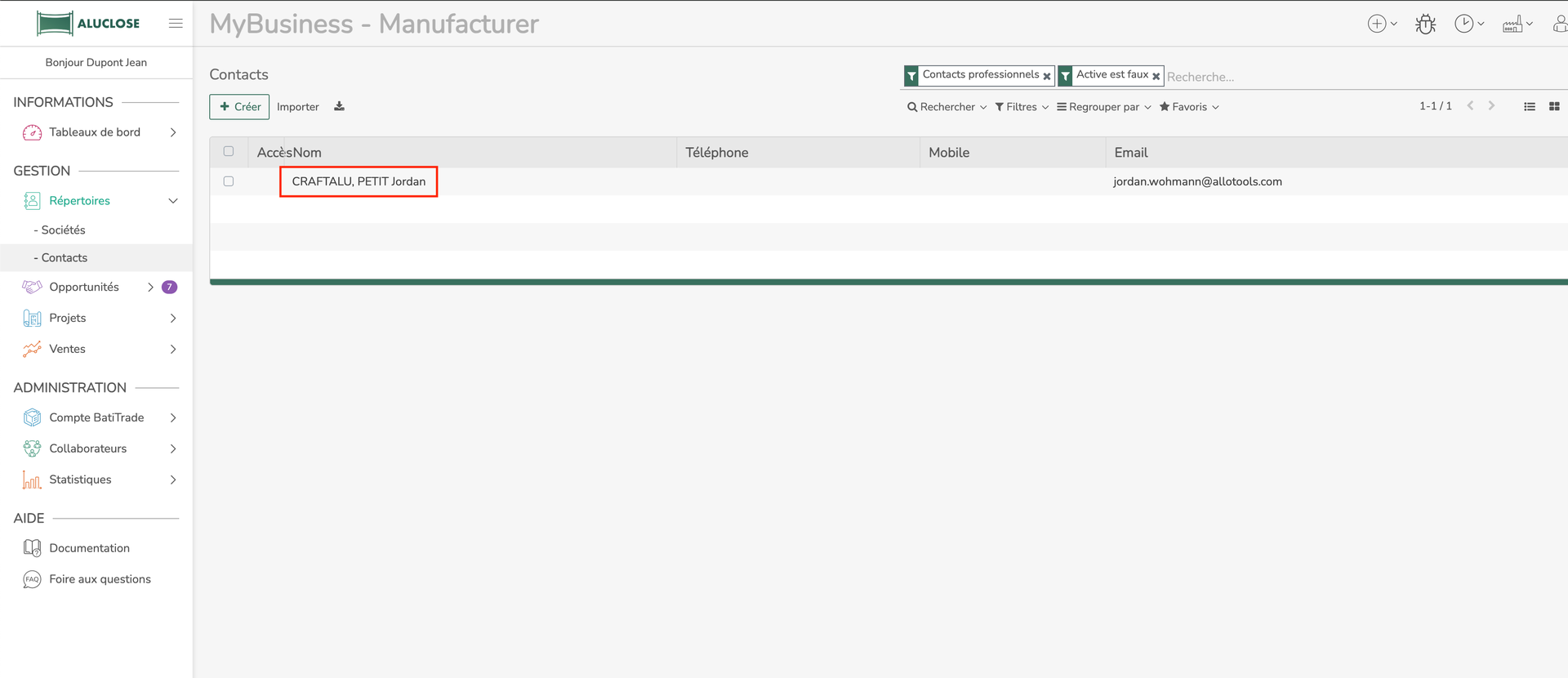 Recherchez la société de l'utilisateur puis cliquez dessus afin d'ouvrir sa fiche société