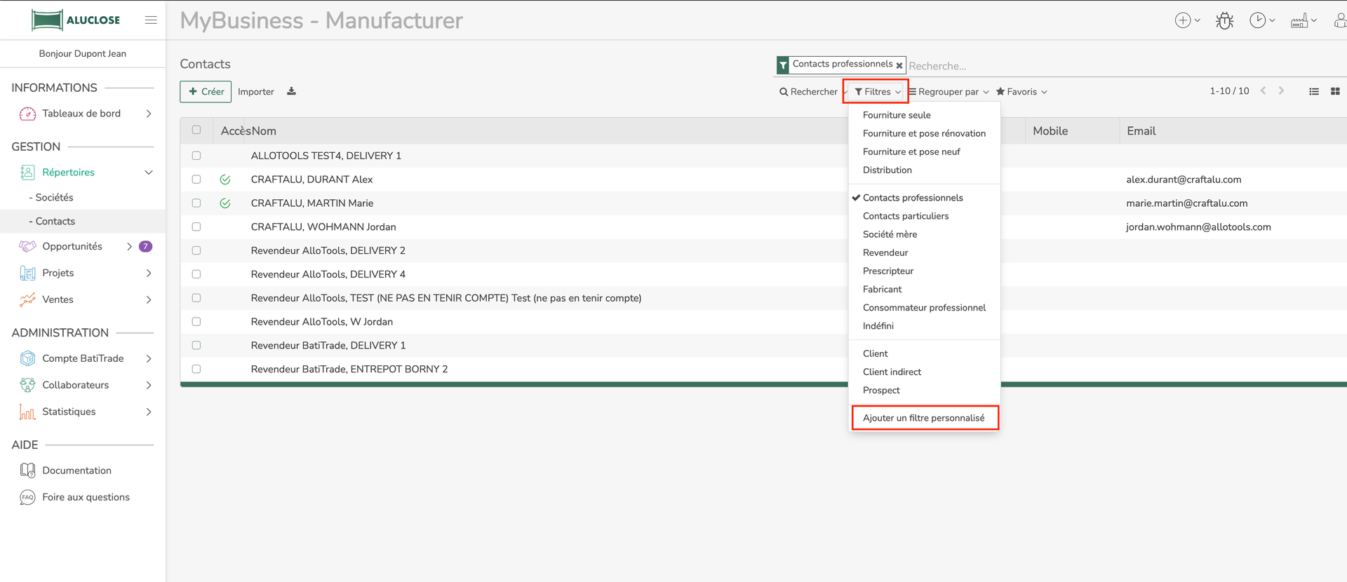 Pour cela, vous devez appliquer un filtre afin d’afficher les contacts archivés.