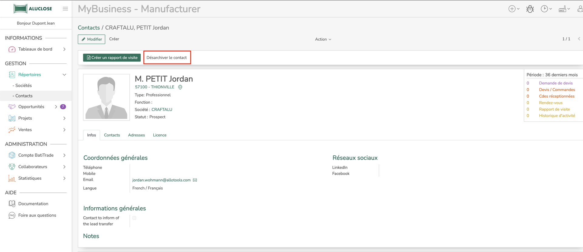 Archiver ou désarchiver un contact (utilisateur client)